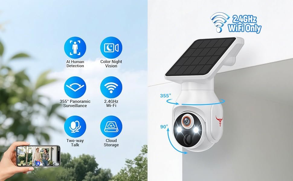 C¨¢mara de seguridad solar inal¨¢mbrica: F¨¢cil de instalar sin cables ni electricidad.